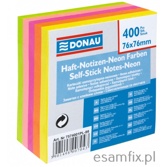 Kostka samoprzylepna DONAU, 76x76mm, 1x400 kart., neonowa