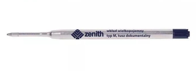 Metalowy wkład wielkopojemny, dostępny w trzech kolorach tuszu: niebieskim, czarnym, czerwonym.