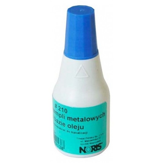 - olejowy, do pieczątek z metalową płytką stemplującą - buteleczka z końcówką ułatwiającą nasączenie poduszek oraz nakrętką w kolorze tuszu - pojemność: 25 ml