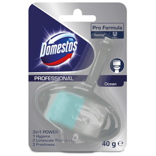 Domestos Pro Formula Rim Blocks 3in1 Power utrzymują twoją toalete w czystości i swieżości, pomagając jednocześnie zapobiegac osadzaniu się kamienia.