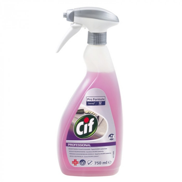Cif Professional 2in1 Cleaner Disinfectant jest gotowym do użycia preparatem przeznaczonym do mycia i dezynfekowania powierzchni i urządzeń w gastronomii, w miejscach przygotowywania i spożywania posiłków