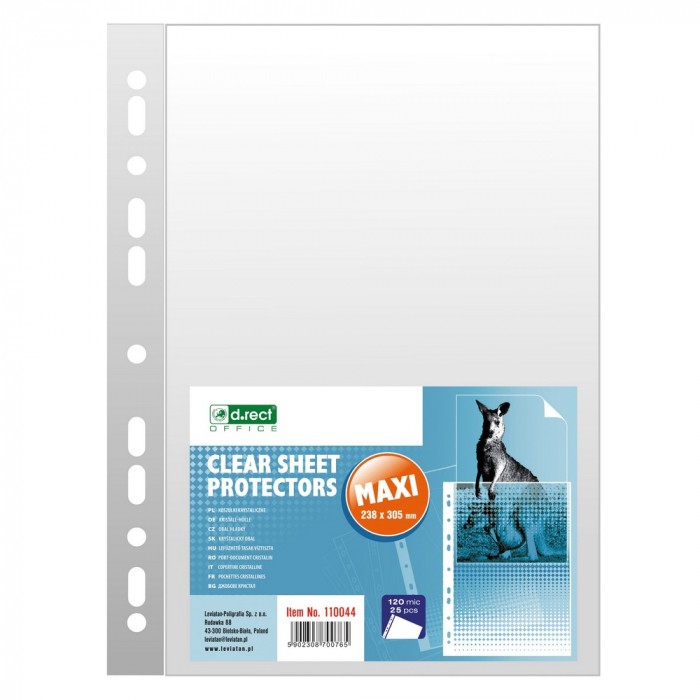 - Opakowanie foliowe zawiera 25 sztuk koszulek. Rozmiar maxi: 238 x 305 mm
