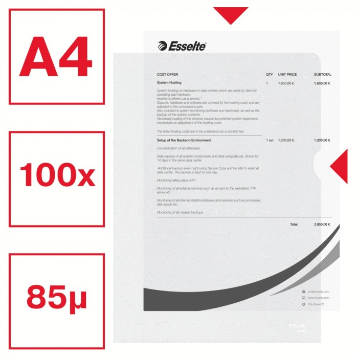 Ofertówki A4 groszkowe ESSELTE, 30% PP z recyclingu, 85 mic., 100 sztuk