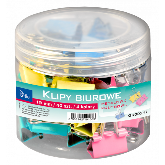 Klipy biurowe TETIS GK002-A 15 mm 60 sztuk mix kolorów