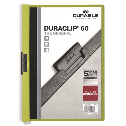 - skoroszyty A4 umożliwiające przechowywanie dokumentów bez potrzeby dziurkowania - zacisk wykonany ze specjalnej elastycznej stali - posiadają 5-letnią gwarancję na siłę docisku - przezroczysta okładka - pojemność: Duraclip 60 - 60 kartek
