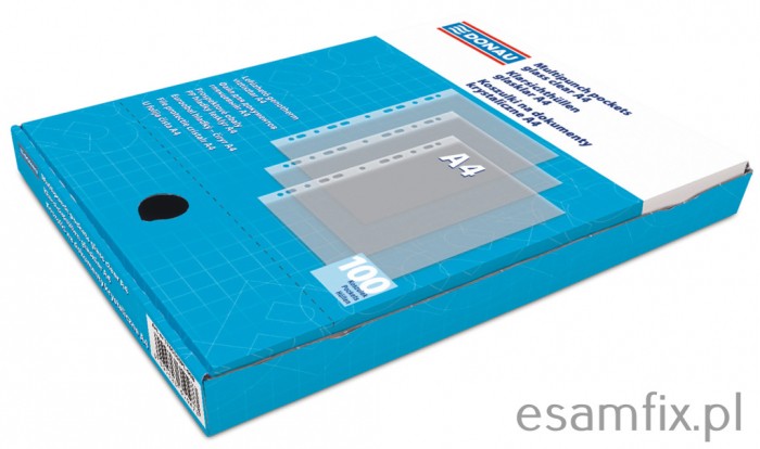 Koszulki A4 krystaliczne DONAU 45mic op./100 szt. w pudełku.