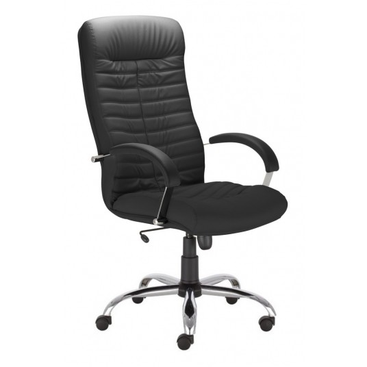 - tapicerowany wysokiej jakości eko-skórą - mechanizm TILT, funkcje: - możliwość swobodnego kołysania się - blokada kąta odchylenia oparcia w pozycji do pracy - regulacja siły oporu oparcia za pomocą pokrętła - regulacja wysokości siedziska za pomocą podnośnika pneumatycznego - podłokietniki metalowe z miękkimi, tapicerowanymi nakładkami - podstawa wykonana z polerowanego aluminium, kółka do powierzchni dywanowych