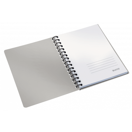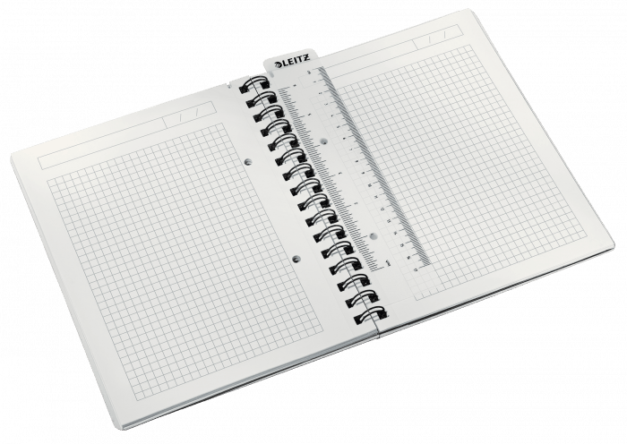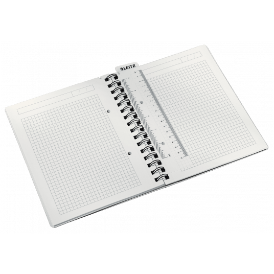 - kołonotatnik o uznanej jakości Leitz Premium ze stylową okładką - idealny do robienia notatek i przechowywania luźnych dokumentów oraz małych przedmiotów. - bardzo mocna okładka PP tworzy idealną, przenośną podkładkę do pisania - oprawa w spiralę umożliwia 360 -stopniowe otwieranie kołonotatnika, który złożony na pół może być wykorzystany jako podkładka do robienia notatek - zintegrowana kieszeń do chowania luźnych kartek - jedna strona z 10 perforowanymi karteczkami do robienia krótkich notatek - wyjmowana linijka może służyć także jako zakładka - mikroperforacja z nacięciem do jeszcze łatwiejszego odrywania kartek - format: A4 lub A5, 80 kartek papieru o gramaturze 90 g/m2 , z certyfikatem FSC®