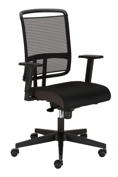 - ergonomiczne krzesło biurowe - siatkowe oparcie z podparciem pod lędźwie - siedzisko tapicerowane tkaniną - mechanizm zapewniający możliwość swobodnego kołysania się - oparcie odchylające się synchronicznie z siedziskiem - możliwość blokady oparcia w 5 pozycjach - Anti-Shock – zabezpieczenie przed uderzeniem oparcia w plecy użytkownika po zwolnieniu blokady - regulacja wysokości siedziska za pomocą podnośnika pneumatycznego - regulowane podłokietniki - plastikowa podstawa - elementy plastikowe w kolorze czarnym - kółka do powierzchni dywanowych w standardzie