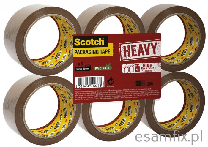 - najmocniejsza taśma pakowa 3M do zabezpieczenia paczek, które są cięższe niż standardowo, narażone w transporcie na wstrząsy i uderzenia, transportowane i magazynowane w trudnych warunkach - taśma z dwukierunkowo zorientowanym podkładem ScotchPro™ zapobiegającym pękaniu pod wpływem ciężaru, wstrząsów i uderzeń - specjalna formuła kleju HEAVY zapewnia jeszcze wyższą siłę przyczepności do kartonu - produkt wolny od PVC i rozpuszczalników - gwarancja dbałości o środowisko - płynnie się odwija i wygodnie odcina z pomocą podajnika Scotch® HE180 - każda rolka taśmy Scotch® spełnia wysokie parametry jakościowe dla wyższej efektywności pracy i gwarancji rezultatu - taśma: ScotchPro™ polipropylen, klej: syntetyczny kauczukowy bez rozpuszczalników - grubość całkowita taśmy: 56 mic. - wymiary: 50 mm x 66 m