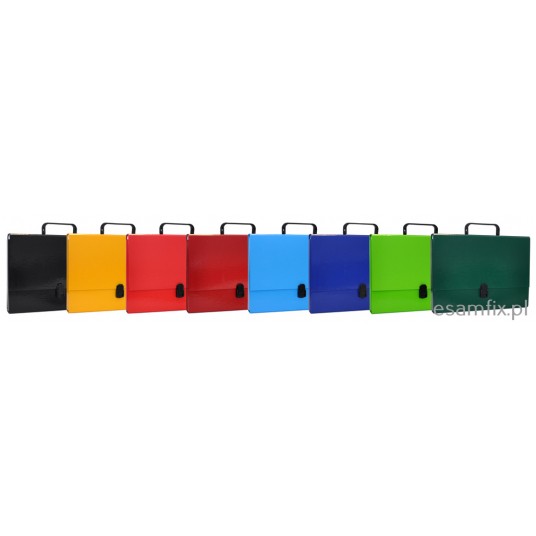 - wykonana ze sztywnej ,dwustronnie gładzonej tektury 2 mm - wykonana z wytrzymałej tektury, oklejonej kolorowym papierem kredowym oraz bezbarwną folią PP o strukturze płótna - zamykanie na zamek plastikowy - wewnątrz biała wyklejka - łączenia na nity - format: A4+ - szerokość grzbietu 50 mm - wymiary: 50 x 240 x 319 mm