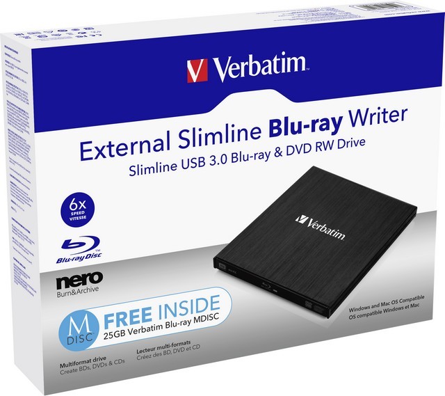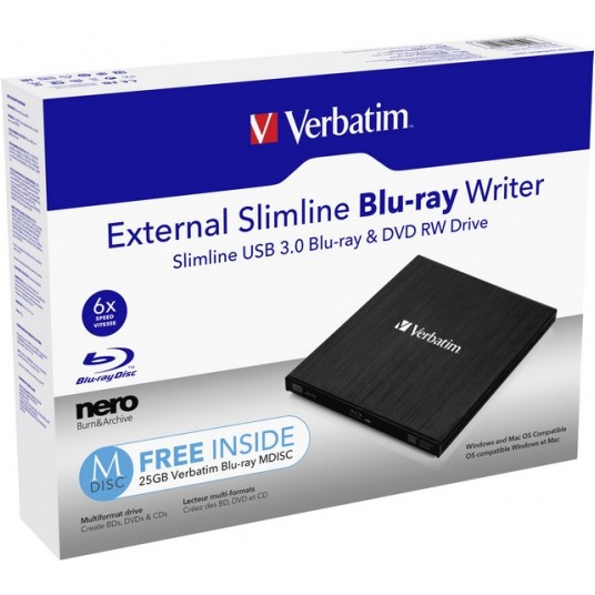Zewnętrzna nagrywarka Blu-ray Slimline Verbatim US