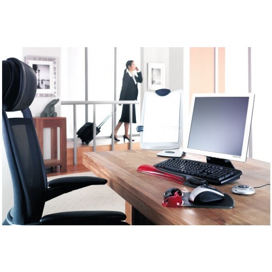 - podkładka Duo Gel składa się z trwałej winylowej podkładki zapewniającej szybkie i precyzyjne ruchy myszy oraz podpórki pod nadgarstek, która dopasowuje się do kształtu nadgarstka użytkownika, dopełniając tym komfort użytkowania.