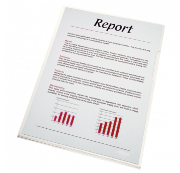 - Klasyczna obwoluta typu "L" wykonana ze sztywnej przeźroczystej folii PP 150 mic w formacie A4.