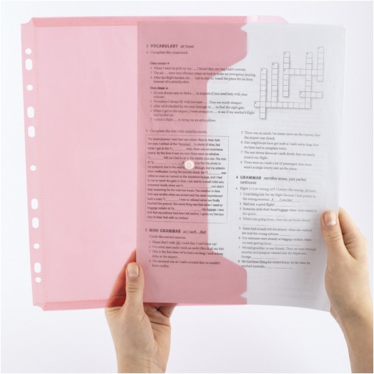 - Wyposażona w trwałe zamknięcie na zatrzask oraz uniwersalną perforacją umożliwiającą wpięcie do każdego typu segregatora.