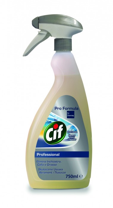 - Gotowy do użycia - Alkaliczny Cif Heavy Duty Cleaner jest skuteczny do usuwania zanieczyszczeń takich jak: tusz, atrament, flamastry, klej oraz inne trudne do usunięcia zanieczyszczenia - Nie należy stosować na powierzchniach wrażliwych na alkalia - Nie stosować na aluminium oraz powierzchniach mających kontakt z żywnością - Pojemność: 750ml