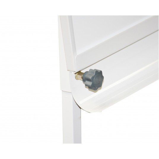 - powierzchnia wykonana ze stali lakierowanej o grubości 2 mm w kolorze białym - rozmiar tablicy 70 x 100 cm - regulowana wysokość nóżek (180 cm) - stabilna metalowa konstrukcja, metalowy docisk do papieru, rama plastikowa w kolorze białym - tył tablicy wykończony okleiną w kolorze białym - metalowa półka o długości 70 cm - flipchart przeznaczony do pisania markerami oraz zawieszania kartek za pomocą magnesów