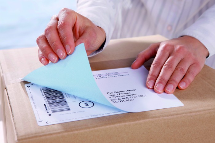 Kryjące etykiety na paczki 199,6 x 143,5 mm, białe etykiety papierowe, etykiety kurierskie 100 ark. / op., Avery L7168B-100