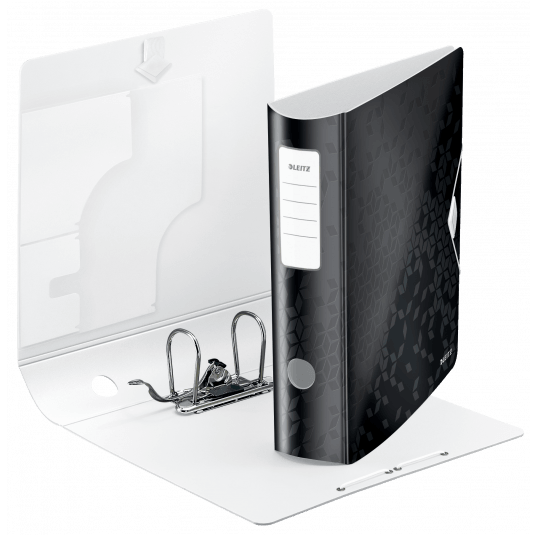 - Opatentowany, precyzyjny mechanizm 180° umożliwiający o 50% szersze otwarcie i o 20% szybsze segregowanie dokumentów.