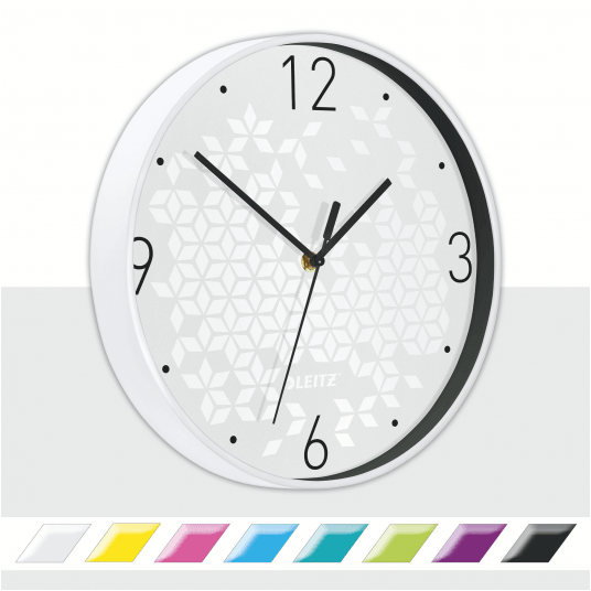 - cichy zegar ścienny w atrakcyjnej kolorystyce WOW. Dwukolorowa oprawa o średnicy 29 cm wykonana z wytrzymałego tworzywa sztucznego zestawiona jest ze szklanym frontem. Zegary z bezgłośnie poruszającymi się wskazówkami idealnie nadają się do biur, pomieszczeń szkoleniowych czy sypialni - element kolekcji Leitz WOW oferującej szeroki wybór stylowych produktów biurowych dostępnych w przykuwających wzrok kolorach i wyrafinowanym wzornictwie, które pozwoli Ci wyrazić swoją osobowość - cichy, kwarcowy mechanizm - tarcza z geometrycznym wzorem w kolorach WOW i dużymi cyframi - trzy wskazówki zegara są dobrze widoczne na tle tarczy - z wygodnym otworem do zawieszania - zasilanie 1 baterię AA (niedołączana do zestawu)