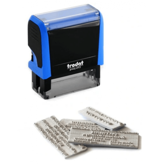 Kompletny zestaw gotowy do użycia, składa się z automatu Trodat, poduszki oraz gumki.