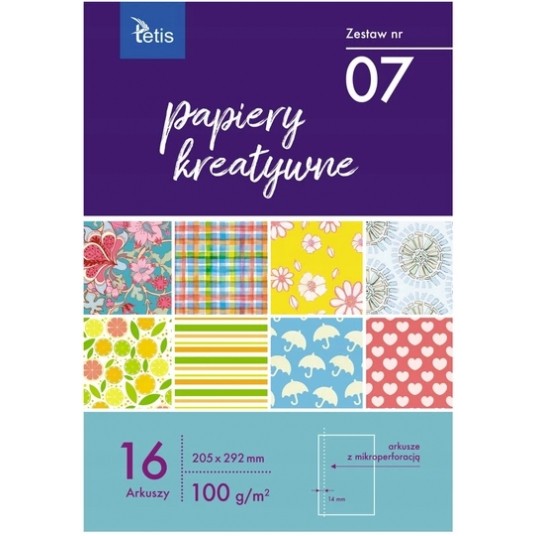 - Zestaw 16 jednostronnie zadrukowanych arkuszy ozdobnych.