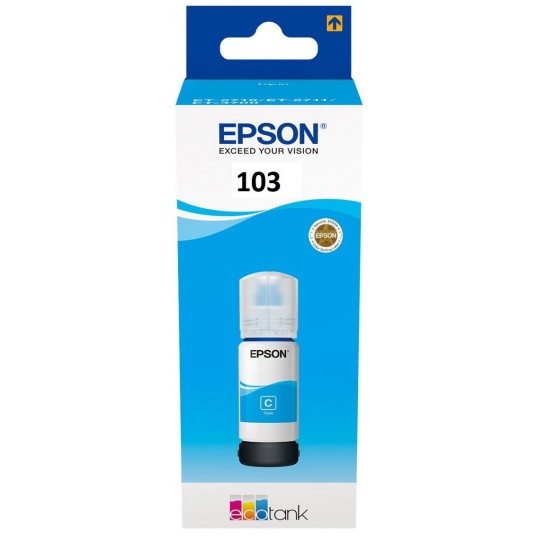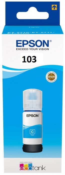 Oryginalny błękitny tusz do drukarek Epson EcoTank L3110, Epson EcoTank L3111, Epson EcoTank L3150, Epson EcoTank L3151. Pojemność wynosi 65 ml, wydajność do 7500 stron zgodnie z normą ISO/IEC 24711.