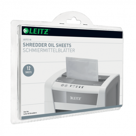 12 naoliwionych arkuszy, łatwych do zastosowania (nie ma bałaganu i problemu z cieknącym olejem) Dzięki arkuszom ostrza niszczarek są nasmarowane, co poprawia ich wydajność Odpowiednie do wszystkich modeli niszczarek Leitz Office, jak również wszystkich modeli innych marek - używaj arkuszy przy co trzecim opróżnianiu pojemnika 12 szt. w opakowaniu