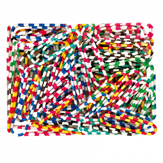 - Spinacze biurowe wykonane ze stali nierdzewnej pokryte kolorowym plastikiem.