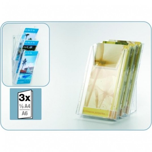 Combiboxx Durable 1/3 A4 L transparentny - zestaw składający się z trzech półek na ulotki 1/3 A4 - dzięki wyjmowanym nóżkom istnieje możliwość korzystania z półek na biurku i na ścianie