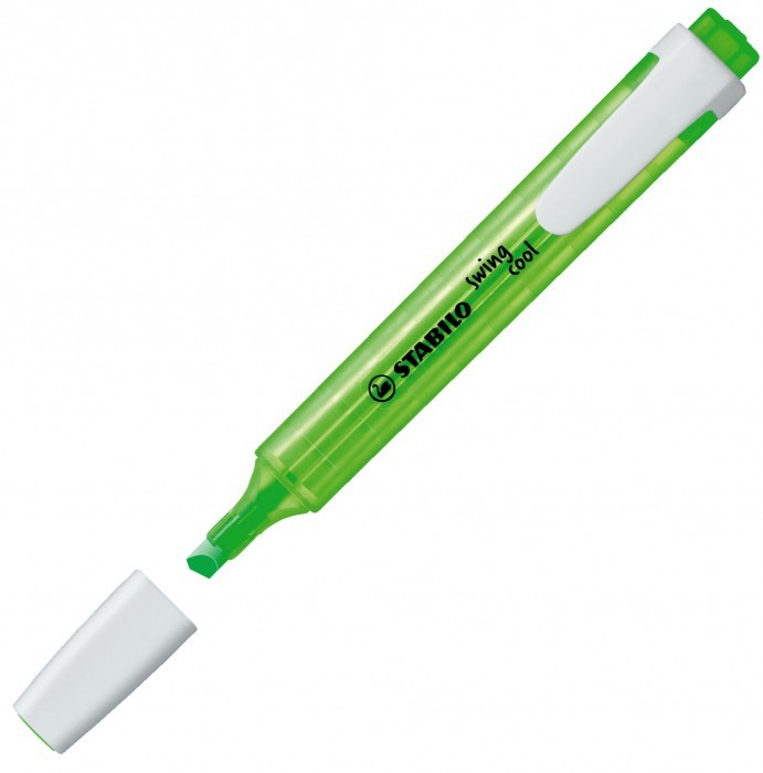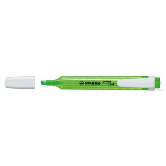 - STABILO swing cool - zakreślacz dla dzieci, młodzieży i osób które podróżują - Kieszonkowy format zakreślacza z praktycznym klipsem do zaczepiania sprawia, że nie zajmuje dużo miejsca więc można go zawsze mieć przy sobie (w torbie, piórniku, kieszeni) - Technologia Anti-Dry-Out sprawia, że pozostawiony bez skuwki nawet prze 4 godziny nie zasycha - Grubość linii 1-4 mm - Dostępny w 8 kolorach - Kolor zielony