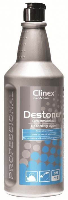 - Odkamieniacz - Skoncentrowany środek o działaniu odkamieniającym - Szczególnie zalecany do czajników, grzałek elektrycznych, ekspresów do kawy, zlewów, brodzików, jak również wszelkich powierzchni niklowanych, chromowanych, stalowych, miedzianych itp. - Oprócz działania odkamieniającego, jednocześnie nabłyszcza myte powierzchnie, nie powodując ich uszkodzenia - Preparat zalecany jest również do stosowania w zmywarkach do mycia naczyń jako środek zapobiegawczy przeciw osadzaniu się kamienia - bieżące płukanie - Preparat do usuwania kamienia wodnego z urządzeń gastronomicznych oraz w gospodarstwie domowym