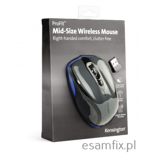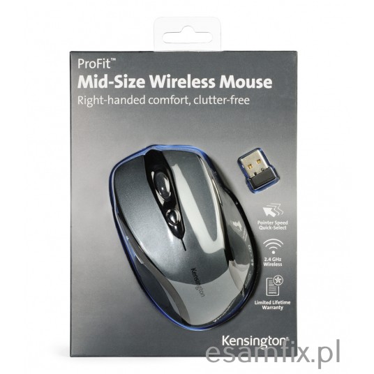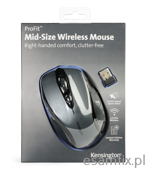 mysz bezprzewodowa z odbiornikiem nano, który można schować w myszy ergonomiczny kształt idealnie dopasowany do prawej dłoni odbiornik bezprzewodowy 2,4 GHz zapewnia duży zasięg i minimalne zakłócenia kółko przewijania z przyciskiem środkowym i szybki wybór wskaźnikiem czujnik optyczny o wysokiej rozdzielczości (do 1750 dpi) zapewniający precyzyjne sterowanie czas pracy na bateriach to nawet 12 miesięcy 2 baterie AAA w zestawie kolor: grafitowy dożywotnia gwarancja