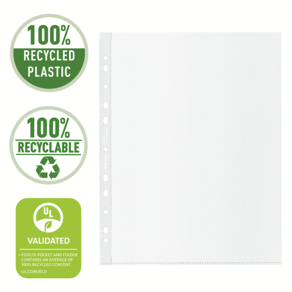 11 uniwersalnych otworów na pasku umożliwiających wpięcie w każdy segregator, wzmocnienie wykonane jest z przezroczystej folii pochodzącej z recyklingu.