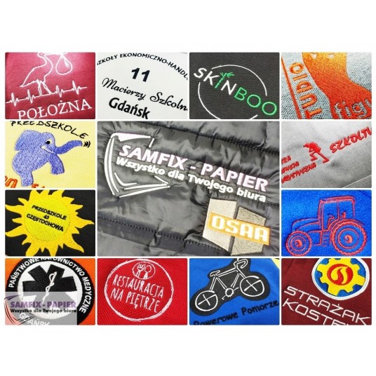 Po dokonaniu zakupu prosimy dostarczyć nam logo i/lub treść do wyhaftowania* na adres mailowy (grafik@samfix.com.pl) w formacie JPG lub pdf, w jak najwyższej rozdzielczości. Po zakupie przygotowujemy projekt oraz dopasowujemy kolory nici.