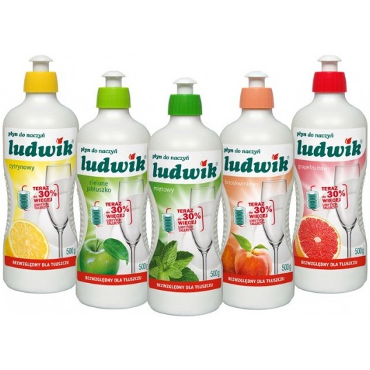 - cytrynowy płyn do mycia naczyń Ludwik - posiada doskonałe właściwości myjące oraz wysoką zdolność do emulgowania tłuszczów - przy pomocy Ludwika można myć naczynia zarówno w ciepłej, jak i zimnej wodzie