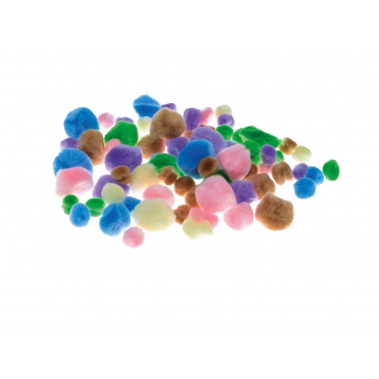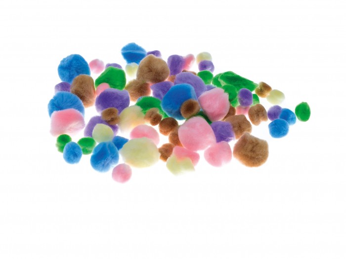 Pompony doskonale nadają się do wszelkiego rodzaju dziecięcej aktywności twórczej. Można je nawlekać na sznurki, druciki kreatywne lub przyklejać do prac plastycznych. Mix 10,15,20,25mm, 78 szt.