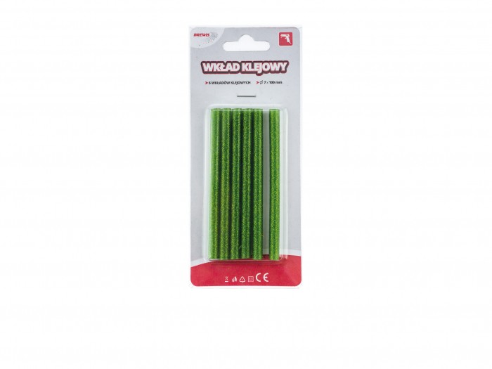 Zestaw wkładów klejowych zielonych 7 mm przeznaczonych do aplikacji na gorąco przy użyciu pistoletu, który jest idealny do pracy w domu, warsztacie i w garażu. W bardzo łatwy, szybki i precyzyjny sposób umożliwia łączenie elementów wykonanych z różnych materiałów. Polecany zarówno do drobnych napraw jak i do tworzenia przedmiotów dekoracyjnych. Dzięki szybkiemu wiązaniu praca nie wymaga dużego nakładu czasu. Klej po wyschnięciu jest bezbarwny i nie wyróżnia się na klejonej powierzchni.