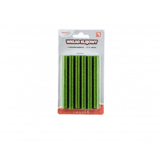 Zestaw wkładów klejowych zielnych 11 mm przeznaczonych do aplikacji na gorąco przy użyciu pistoletu, który jest idealny do pracy w domu, warsztacie i w garażu. W bardzo łatwy, szybki i precyzyjny sposób umożliwia łączenie elementów wykonanych z różnych materiałów. Polecany zarówno do drobnych napraw jak i do tworzenia przedmiotów dekoracyjnych. Dzięki szybkiemu wiązaniu praca nie wymaga dużego nakładu czasu. Klej po wyschnięciu jest bezbarwny i nie wyróżnia się na klejonej powierzchni.