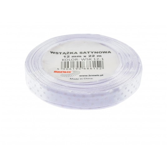 WSTĄŻKA BREWIS KROPKI 12MM 22M BIAŁE