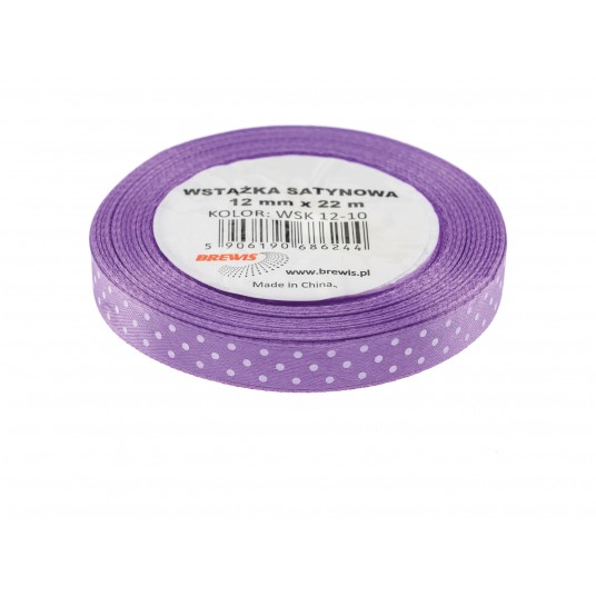 WSTĄŻKA BREWIS KROPKI 12MM 22M FIOLETOWA