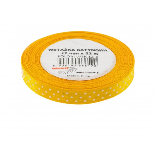 WSTĄŻKA BREWIS KROPKI 12MM 22M POMARAŃCZOWA