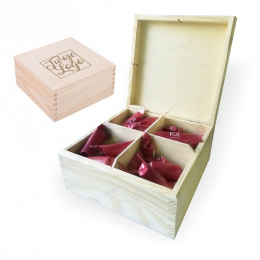 HERBACIARKA DREWNIANA, 4-komorowa Z GRAWEREM