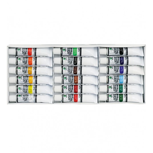 – dobrze i szybko schną, nie pękają – doskonale przepuszczają powietrze – odporne na wilgoć – odporne na blaknięcie – kolory są intensywne i trwałe – przeznaczone do malowania, pisania na papierze, drewnie, materiałach, cemencie, bambusie – po zakończonej pracy pędzle należy umyć lub zamoczyć w wodzie – pakowane w trwałe, aluminiowe tubki, chroniące przed wysychaniem i zapobiegające ulatnianiu się zapachu farb – pojemność: 12 ml – 18 kolorów