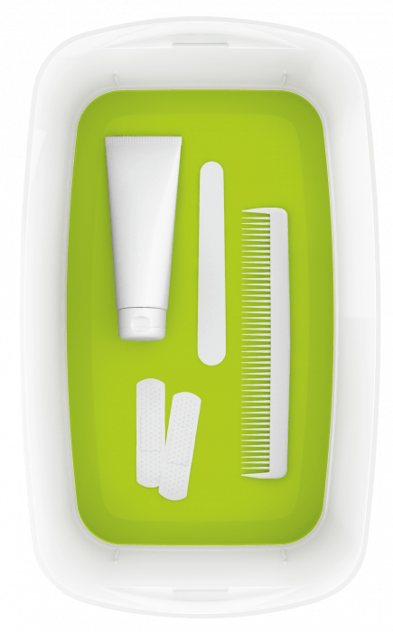 - w połączeniu z pojemnikiem wąskim lub z półką sortującą małą stanowi idealne rozwiązanie do przechowywania zawartości w uporządkowany sposób - oszczędność miejsca: na standardowej półce zmieści się pojemnik średni MyBox® z ustawionymi na nim 2 pojemnikami małymi MyBox® - delikatny zatrzask przytrzymuje pokrywę, nie przeszkadzając jednocześnie w jej łatwym zdejmowaniu - wymiary: 318 x 128 x 191 mm