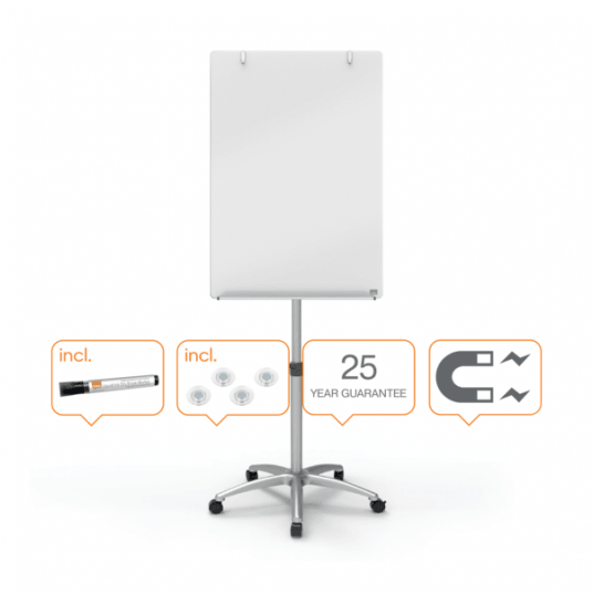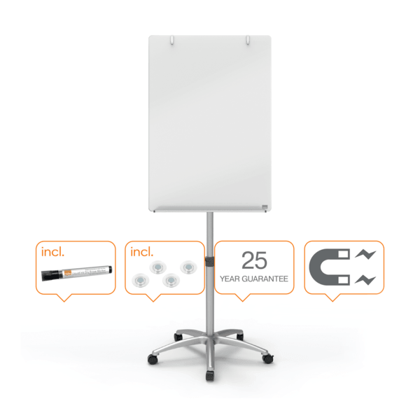 Dzięki mobilnemu szklanemu flipchartowi Twoje pomysły zostaną zauważone! Współczesne, stylowe wzornictwo i regulowana wysokość zapewnią idealne dopasowanie do przestrzeni każdej sali konferencyjnej i innych pomieszczeń biurowych. W zestawie haczyki do bloków Nobo. Szklana magnetyczna powierzchnia tablicy zapewnia znakomitą ścieralność, także przy częstym użytkowaniu.