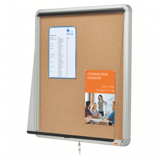 Jeżeli Twoje ogłoszenia wymagają zabezpieczenia, gabloty te będą idealnym rozwiązaniem. Przeznaczone do użytku zarówno w pomieszczeniach, jak i na zewnątrz. Wyposażone w szklany front o grubości 4 mm i zamek z kluczem - zapewniają bezpieczeństwo umieszczonych w nich informacji. Szklana gablota wewnętrzna. Korkowa. Format 6 x A4.