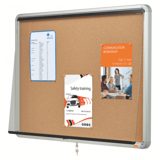 Jeżeli Twoje ogłoszenia wymagają zabezpieczenia, gabloty te będą idealnym rozwiązaniem. Przeznaczone do użytku zarówno w pomieszczeniach, jak i na zewnątrz. Wyposażone w szklany front o grubości 4 mm i zamek z kluczem - zapewniają bezpieczeństwo umieszczonych w nich informacji. Szklana gablota wewnętrzna. Korkowa. Format 9 x A4.
