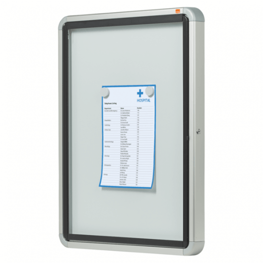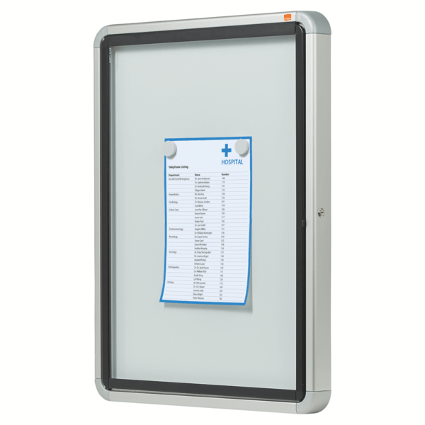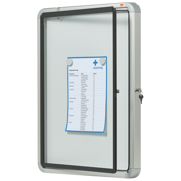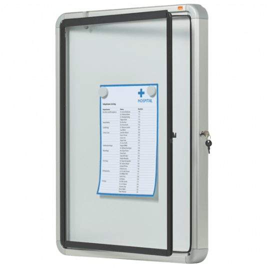 Jeżeli Twoje ogłoszenia wymagają zabezpieczenia, gabloty te będą idealnym rozwiązaniem. Przeznaczone do użytku zarówno w pomieszczeniach, jak i na zewnątrz. Wyposażone w szklany front o grubości 4 mm i zamek z kluczem - zapewniają bezpieczeństwo umieszczonych w nich informacji. Szklana gablota zewnętrzna. Magnetyczna. Format 4 x A4.