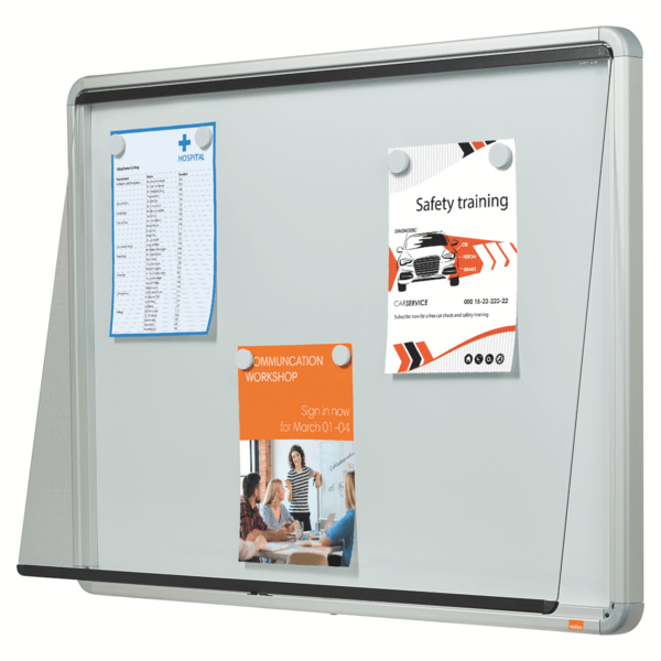 Jeżeli Twoje ogłoszenia wymagają zabezpieczenia, gabloty te będą idealnym rozwiązaniem. Przeznaczone do użytku zarówno w pomieszczeniach, jak i na zewnątrz. Wyposażone w szklany front o grubości 4 mm i zamek z kluczem - zapewniają bezpieczeństwo umieszczonych w nich informacji. Szklana gablota zewnętrzna. Magnetyczna. Format 9 x A4.
